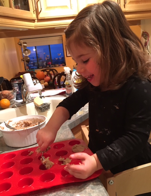 You don’t have to be a parent to enjoy baking, eating or feeding these mini-muffins, but it sure is a fun, educational activity with your children as the weather gets cold, not to mention it doesn’t involve screens.